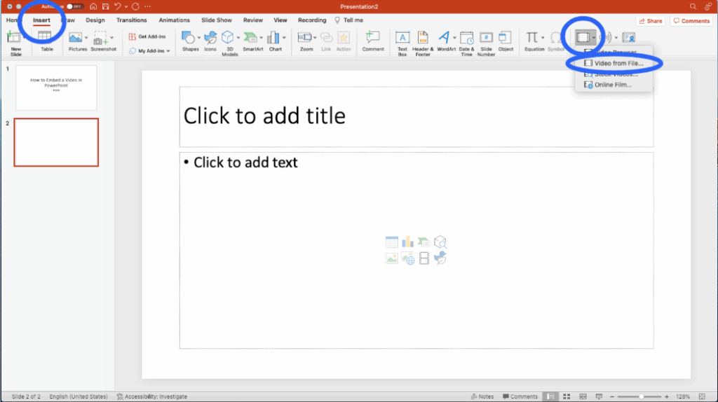 The location of your video will determine how you embed it in your PowerPoint presentation.